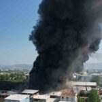 Bursa’nın merkez Yıldırım ilçesinde kağıt fabrikasındaki yangının büyüklüğü dron ile havadan görüntülendi. Fabrika civarındaki konutlar da tedbir amaçlı boşaltıldı.