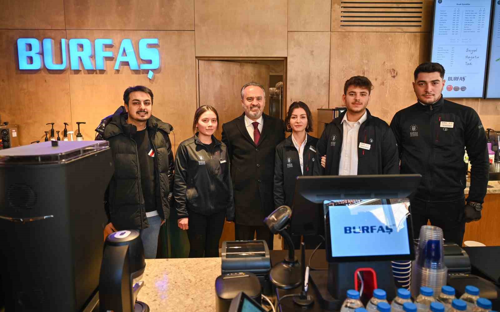 Bursa Büyükşehir Belediyesi tarafından Tarihi Çarşıbaşı Meydanı’na ‘hızlı kahve konseptiyle’ kazandırılan BURFAŞ Kafe, ‘güne kahvesiz başlayamayan, gün içinde kahvesiz yapamayan kahve tutkunları’ndan tam not aldı. Büyükşehir Belediye Başkanı Alinur Aktaş da yeni açılan mekanı ziyaret ederek vatandaşlarla sohbet etti.