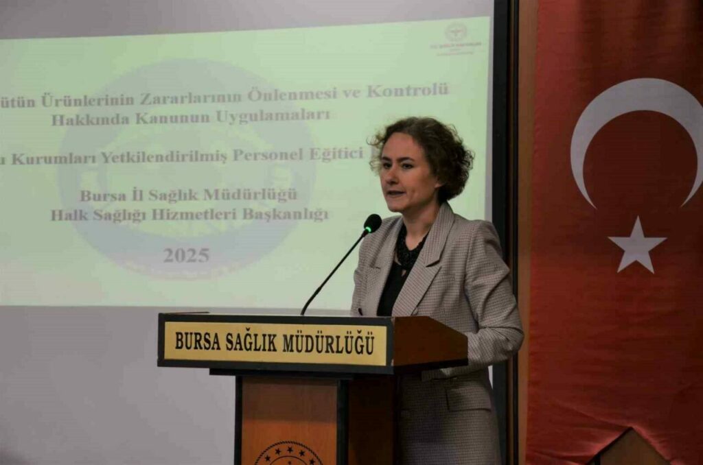 Bursa İl Sağlık Müdürlüğü, tütün kullanımının zararlarına dikkat çekmek ve kamu kurumlarının kapalı alanlarında tütün ürünü tüketilmesine dair yaptırımların uygulanabilirliğinin arttırılabilmesi amacıyla kamu kuruluşlarından temsilcilere güncelleme eğitimi düzenledi. Bursa Vali Yardımcısı Hulusi Doğan’ın da katıldığı eğitimde, Bursa İl Sağlık Müdürlüğü Halk Sağlığı Hizmetleri Başkanı Dr. İrfan Oğuz’un yanı sıra kamu kurumlarında tütün kullanımına karşı idari yaptırım yetkisi bulunan personeller de yer aldı.