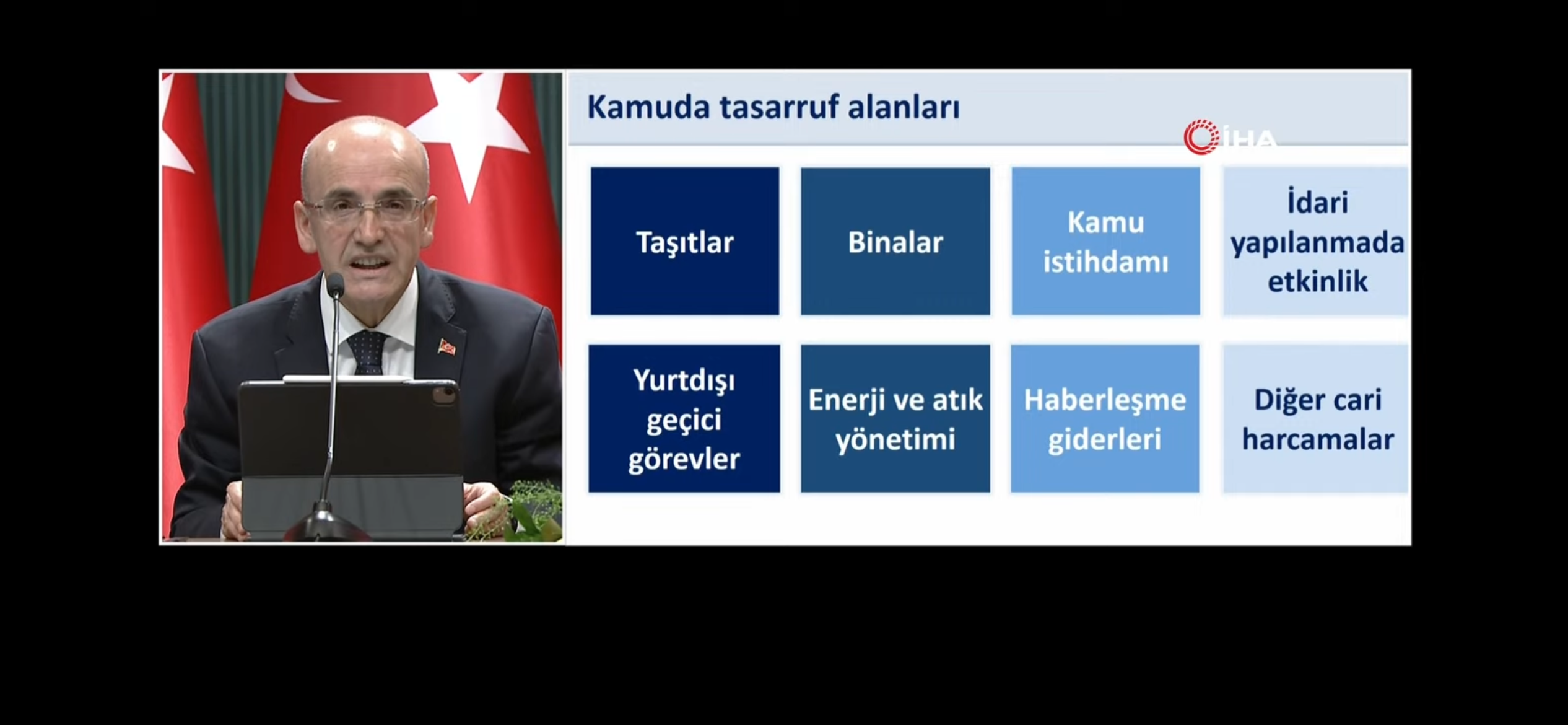 16 Nisan Kabine Toplantısı akabinde Cumhurbaşkanı Erdoğan’ın Orta Vadeli Programın güçlendirilmesi doğrultusunda kamuda tasarruf artışı, yatırımların önceliklendirilmesi ve yapısal reformların hızlandırılması hususlarını ifade ettiğini hatırlatan Yılmaz, “6 Mayıs Kabine Toplantısı akabinde ‘Kamuda taşıtlar, binalar, haberleşme giderleri, cari harcamalar, hizmet içi eğitim, yurtdışı seyahat, kamu istihdamı gibi alanlarda’ tasarruf kültürünü güçlendirici adımlar atılacağını ve bu yönde gerekli talimatları verdiklerini belirtmişlerdir. 7 Mayıs tarihinde sosyal medya kanalıyla yaptıkları paylaşımda ise ‘bir taraftan üretip yeni pazarlara ihraç ederken, diğer taraftan içeride tasarruf kültürünü yaygınlaştırmamız gerekiyor. Buna kamu olarak inşallah biz öncülük ve rehberlik edecek, daha az kaynak kullanarak daha fazla etkide bulunacak projelere ağırlık vereceğiz’ ifadelerini kullanmışlardır. Birazdan sunulacak olan çalışmamız ilgili tüm kurumlarımızın katkısı sonucunda bu talimatın tekemmül ettirilmesi ile oluşturulmuştur” diye konuştu.