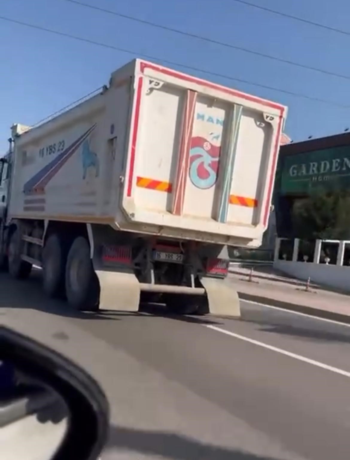 Bursa Mudanya Yolu üzerinde 16 YBS 29 plakalı kamyon ile anayolda ilerleyen sürücü, adeta freni patlamış gibi ilerledi. Bir sağ, bir sol şeride geçerek otomobillerin arasında makas atan sürücü trafiği birbirine kattı. Sürücünün ne kendi ne de başkalarının canını düşünmeden ilerlediği anlar trafikteki diğer sürücülerinin kamerasına saniye saniye yansırken, polis görüntüler üzerine harekete geçti.