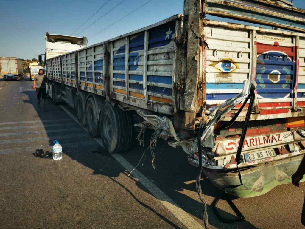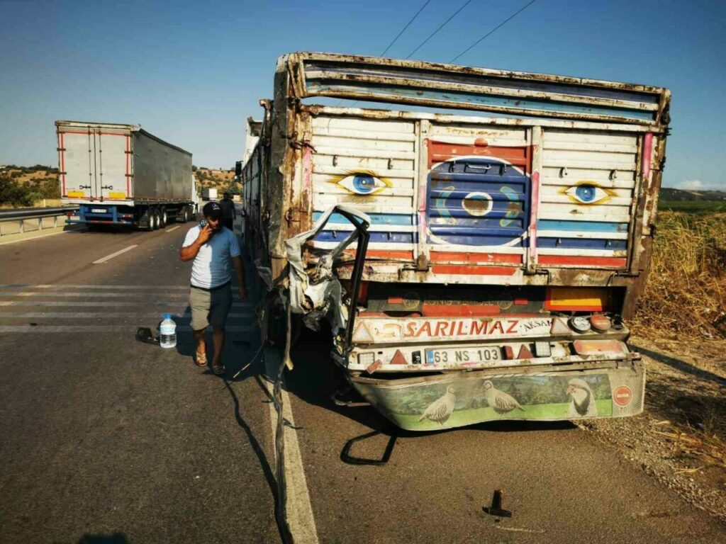 Osman Ü. (43) idaresindeki 16 YV 733 plakalı kamyonet aynı yönde seyreden Sait B. yönetimindeki 63 AGN 117 plakalı kamyona arkadan çarptı. Kamyonette bulunan sürücü Osman Ü. yaralı olarak Karacabey Devlet Hastanesi’ne sevk edildi.