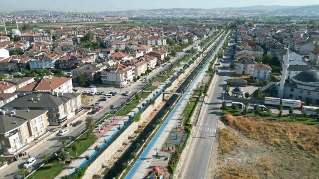 Karayolundan sonra çevre yoluna kadar yaklaşık 2,3 km’lik bir alan bulunduğunu hatırlatan Başkan Taban, “Bu dere hattı U kesit haline dönüştürülerek Eylül ayı sonu veya Ekim başında ihale edilecek. Bu hat üzerinde 4 tane köprümüz var. Köprülerin tamamı yenileniyor. Hem genişletilecek hem de yol akslarına göre ayarlanacak, güvenli geçişler sağlanacak. Dere kenarındaki ağaçlı yeşil alanlarda da yürüyüş yolları, bisiklet yolları, sosyal donatı alanları yapılacak. Çevre yolu tarafındaki genişleyen kısımda yine spor alanlarımız olacak” diye konuştu.