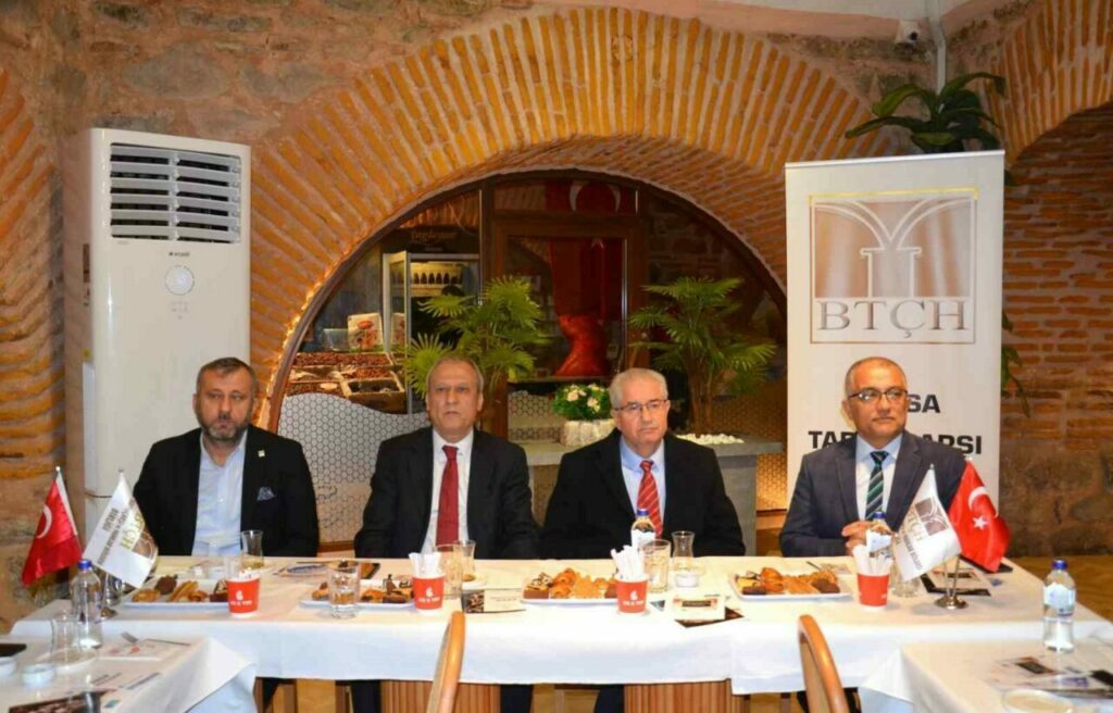 İşletmelerde tütün ihlallerine geçit vermemek ve vatandaşları tütün dumanı maruziyetinden korumak amacıyla denetimlerini aralıksız sürdüren Bursa İl Sağlık Müdürlüğü; Bursa Valiliği ve Osmangazi Kaymakamlığı’nın desteğiyle Tarihi Çarşı ve Hanlar Birliği Derneği üyelerine yönelik bilgilendirme toplantısı gerçekleştirdi. İç Koza Han’da düzenlenen toplantıya Bursa Vali Yardımcısı Hulusi Doğan, Osmangazi Kaymakamı Ali Partal, İl Sağlık Müdürlüğü Halk Sağlığı Hizmetleri Başkanı Dr. İrfan Oğuz ve Bursa Tarihi Çarşı ve Hanlar Birliği Derneği üyeleri katıldı.