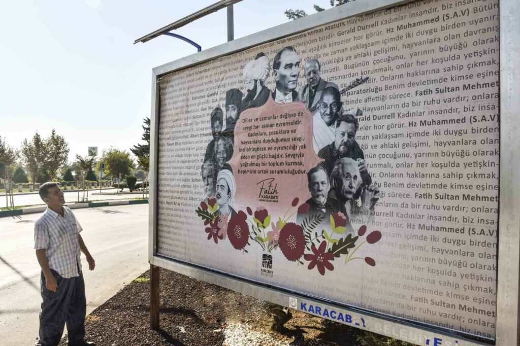 Karacabey Belediyesi’nin ilçe genelindeki açık hava reklam alanlarında yayınlandığı sözler, vatandaşlar tarafından ilgiyle izlenirken sosyal medyada da büyük ilgi uyandırdı.
