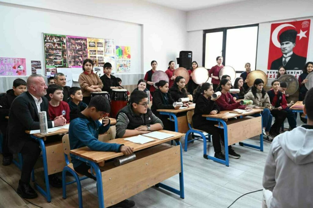 Belediye Başkanı Karabatı, ziyaret sonunda Erdoğan Irmak yönetimindeki okul korosunun keyifli müzik konseri dinleme fırsatı buldu.