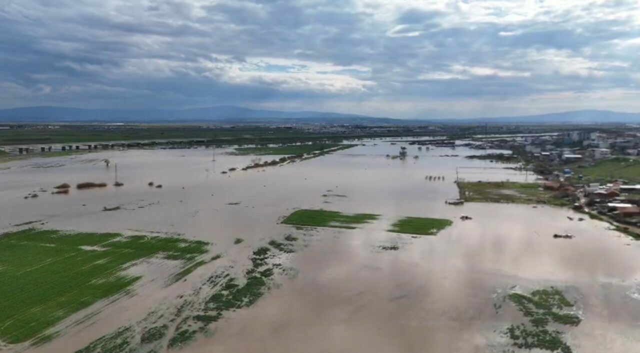 BURSA’NIN KARACABEY İLÇESİNDE ŞİDDETLİ YAĞIŞLAR SEBEBİYLE TAŞAN DERELER KARACABEY OVASINI SULAR ALTINDA BIRAKTI. 10 BİN DÖNÜMDEN FAZLA VERİMLİ TARIM ARAZİSİNİN SULAR ALTINDA KALDIĞI TAŞKININ SULARININ 2 AYDAN ÖNCE ÇEKİLMESİNİN MÜMKÜN OLMADIĞI BİLDİRİLDİ.