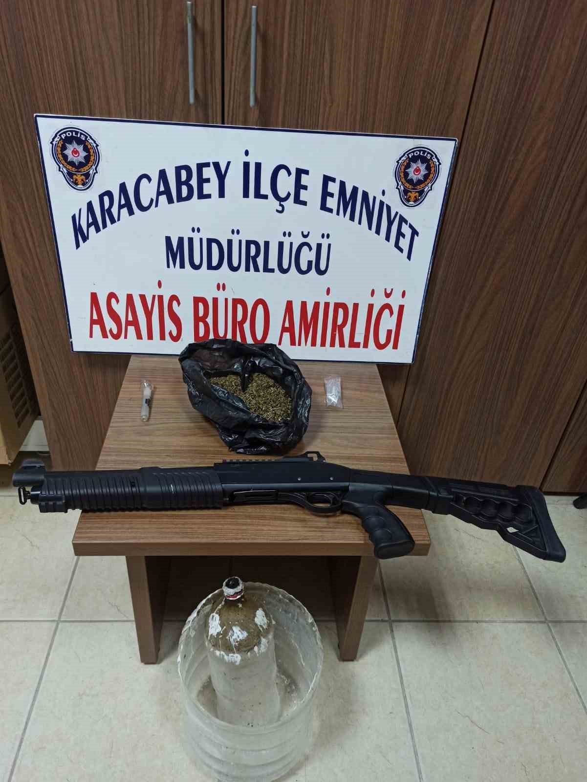 Karacabey İlçe Emniyet Müdürlüğü Asayiş Büro Amirliği ekipleri, ilçede uyuşturucu ticareti yapan ve uyuşturucu madde kullandığı belirlenen 28 kişiyi takibe aldı. Polis ekiplerinin yaptığı teknik ve fizikî takip sonucunda şüphelilerin araçlarında ve ikametlerinde arama yapıldı. Aramalarda 448 adet Uyuşturucu Hap, 207.48 gram sentetik kannabinoid (bonzai), 322 gram methamfetaminin (met), 5.79 gram esrar, 1 adet hassas terazi, 4 tabanca ve 1 pmpalı tüfek ele geçirildi.