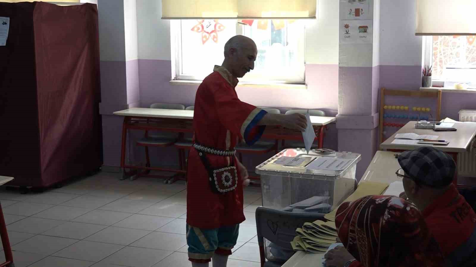 Her seçimde farklı bir mesaj vermek istediğini belirten Keskin, “Karagöz saflık demek, Hacivat ise akıllı. Zamanıyla Hacivat, Karagöz’e sürekli yol gösterirmiş. Ne yapacağın Karagöz bilmezmiş. Bilse de şaşırıp yolda kalırmış. Bende Karagöz kostümüyle oy kullanarak belediye başkanlarının iş yapanlarına, yol gösterenlere, insanlara bir şeyler bırakanlara oy verelim istedik. Bende gelmeden Hacivat’tan akıl aldım. Saflığımı bıraktım. Hizmet verene oyumu kullandım” dedi.