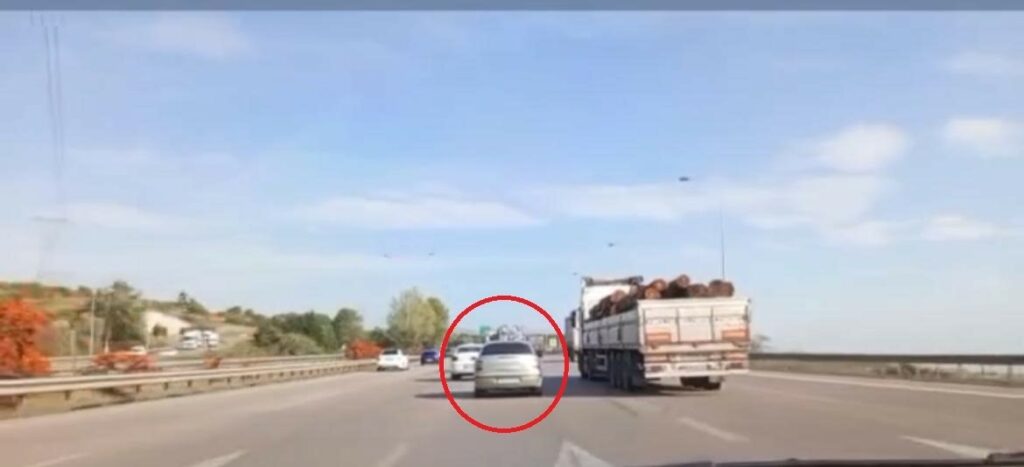 Kaza, Bursa-İstanbul otobanında meydana geldi. İstanbul yolu üzerinde ilerleyen otomobil sürücüsü, merkez istikametine dönüş yapmak istedi. Hızla ilerleyen araç sürücüsü, şerit değiştirmek istedi. Bu esnada yanında ilerleyen kamyondan dolayı kararsız kalan otomobil sürücüsü orta refüje daldı. Kaza anı araç içi kamerasına anbean yansırken, şans eseri sürücü hafif yaralandı.