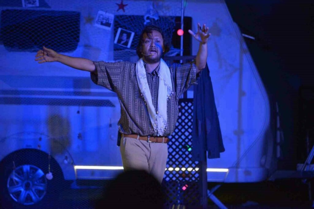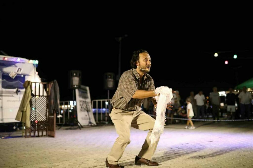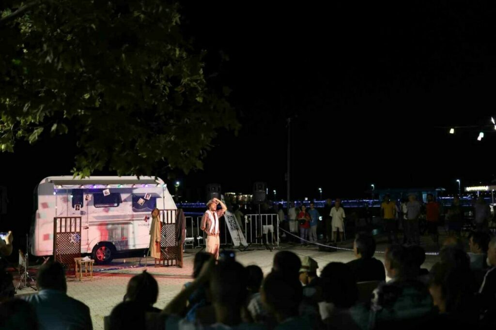 Türk tiyatrosunun önemli isimlerinden Erkan Can’ın yönetmenliğinde, sevilen oyuncu Bilal Çatalçekiç’in güçlü performansıyla sahneye taşınan oyun, ilk gün Gemlik Zeytindalı Meydanı, ikinci gün ise Hüdavendigar Kent Parkı’nda sanatseverlerle buluştu. Kendine özgün karavan sahnesiyle tiyatroya farklı bir bakış açısı getiren oyun, özellikle genç izleyicilerin ilgi odağı oldu. Her iki oyunun ardından seyirciler yönetmen Erkan Can ile söyleşide bir araya gelerek, hem tiyatroya hem de Sait Faik’in eserine dair sohbet etme imkânı buldu.