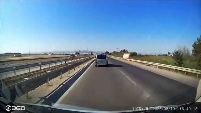 Bursa’nın Karacabey ilçesi yakınlarında anayolda ilerleyen bir araç, yola atılan kamyon lastiğine çarptı. Çarpmanın etkisiyle araçta ağır hasar meydana gelirken, sürücü yaşananlara tepki gösterdi. O anlar da araç kamerasına an be an yansıdı.