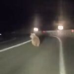 Bursa’da Uludağ’ın eteklerindeki Orhaneli karayoluna inip yolunu kaybeden ayı az kalsın trafik kazası kurbanı olacaktı. Aracıyla yoldan geçen bir sürücü onu takip edip görüntüledi.