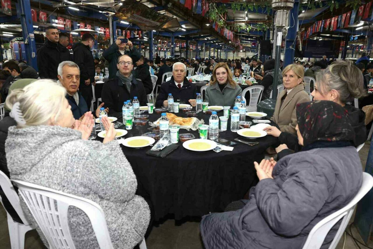 Bursa Büyükşehir Belediye Başkanı Mustafa Bozbey, Karacabeylilerle kardeşlik sofrasında buluşmaktan son derece mutlu olduğunu söyledi. Ramazan ayının bereketini ve huzurunu kent genelinde hissettiklerini belirten Başkan Mustafa Bozbey, gönüllerin aynı duada buluştuğunu, lokmaların paylaşıldığını, kardeşliğin pekiştirildiğini dile getirdi. Ramazan ayının dayanışmanın büyüdüğü, iyiliğin çoğaldığı, kalplerin yumuşadığı bir ay olduğunu ifade eden Başkan Mustafa Bozbey, “Soframızda eşitlik, adalet, paylaşma, birlik ve beraberlik vardır. Ramazan ayı boyunca Bursa’nın dört bir yanında hemşehrilerimizle bir araya geliyoruz. Her akşam kardeşlik sofrasını bir ilçede kuruyoruz. 4 sabit iftar noktasında halkımızla buluşuyoruz. İftara yetişemeyenlere iftariyelik ikram ediyoruz. Ramazan ayında her gün ortalama 35 bin vatandaşımıza ulaşmanın mutluluğunu yaşıyoruz” dedi.
