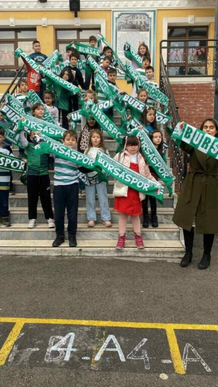 Öğretmenleri Arzu Bilgen Kösen de bu coşkuya ortak oldu. Bursaspor atkılarıyla poz veren öğrenciler, takımlarının bu sezonu da zirvede tamamlayıp Süper Lig yolunda emin adımlarla yürüyeceğine inanıyor.