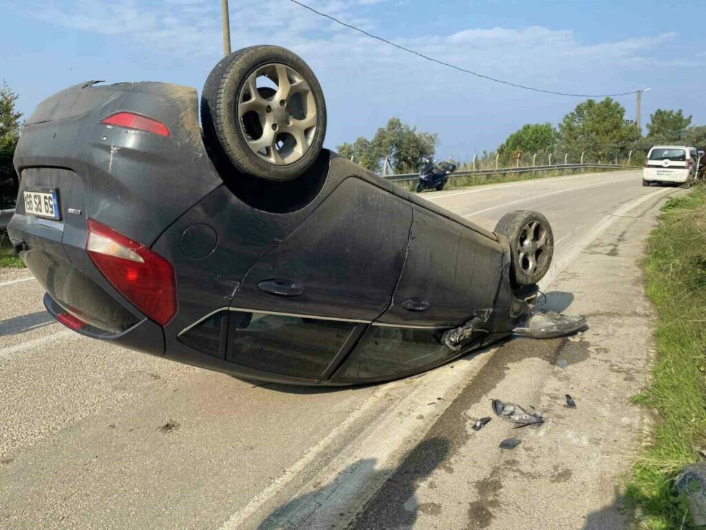 Bursa’nın Mudanya ilçesi Kumyaka girişinde kontrolden çıkan otomobil kayalara çarparak ters döndü. Sürücü ve yolcu, emniyet kemeri sayesinde kazayı yara almadan atlattı.