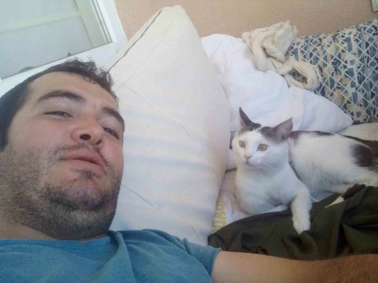 “Çalılıklar arasında iple bağlanmış çaresizdi. Balya ipiyle bağlamışlar, çalılıklara. Bu acımasızlığı nasıl yapmışlar anlamadım. Yanımda her zaman mama taşırım. Biraz verdim aç susuz kalmış küçücük hayvan. Kucaktan hiç inmedi. Ateşi vardı gözü de iltihaplıydı. Tedavi ettirdik kediyi. Bırakmadı beni, ben de onu çok sevdim ve sahiplendim.”