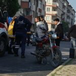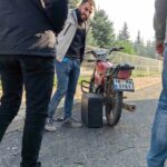 Bursa’nın İnegöl ilçesinde kamyonet ile çarpışan motosiklet sürücüsü, acısını unutup bilgisayarını sordu.