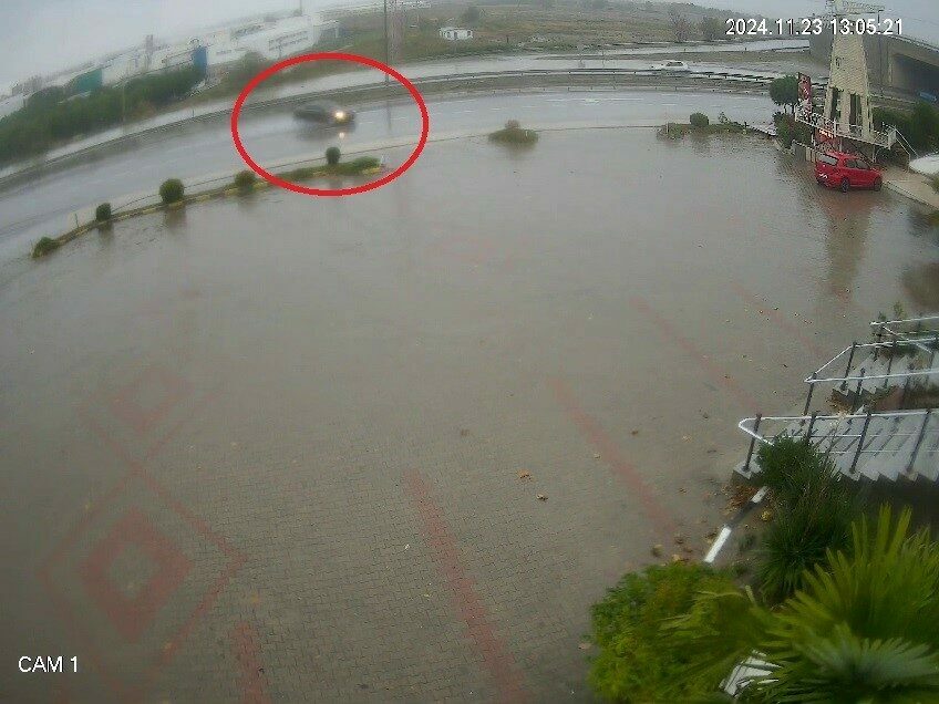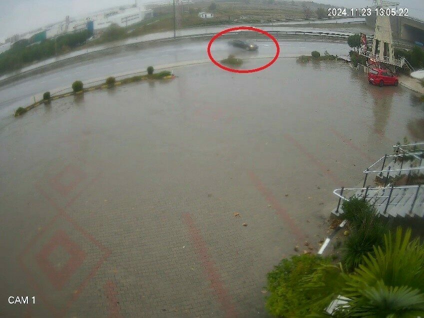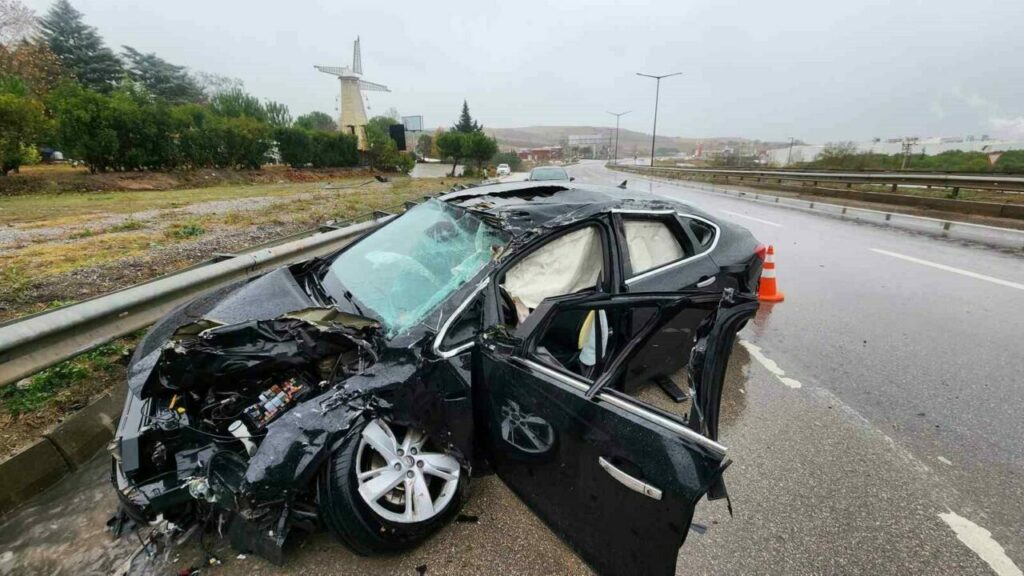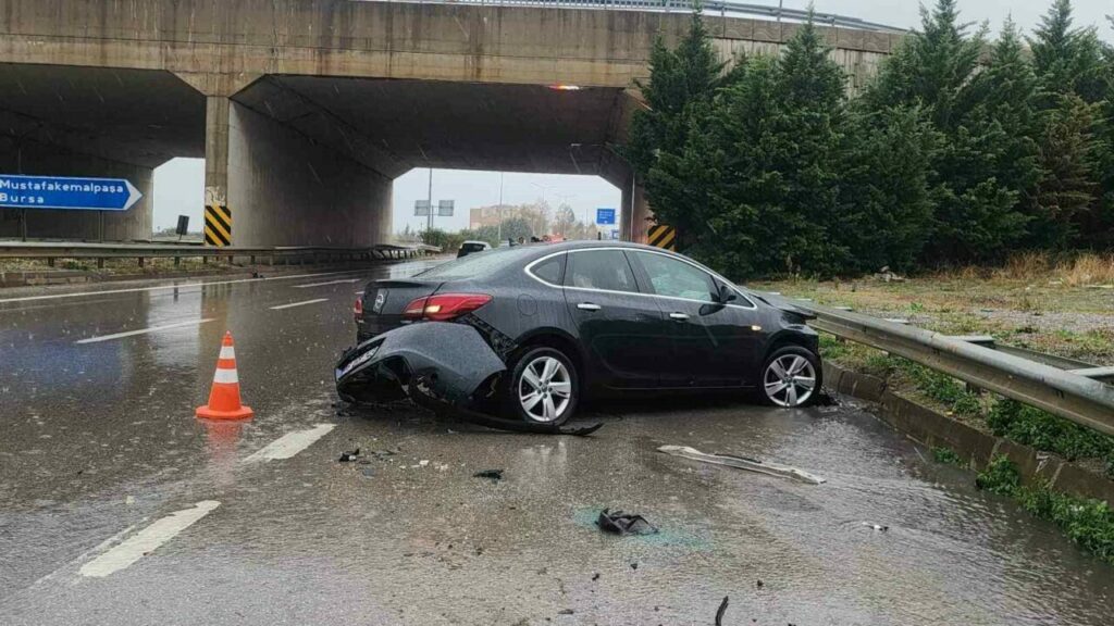 Bursa istikametinden Balıkesir istikametine saat 13.15 sıralarında seyir halinde olan S.G. kontrolündeki araç, yolda biriken su nedeniyle sürücüsünün direksiyon hakimiyetini kaybetmesiyle bariyerlere çarpıp yolun ortasında durdu. Olay sırasında kaza yerinden geçen bölge trafik ekiplerine ait polis cipi, kontrolsüz şekilde yolda kalan araca çarptı. Aracın fotoğraflarını çekmek için araçtan inen sürücüyü dikkatli olması yönünde uyaran çevredeki vatandaşlar, ikinci kazada sürücünün zarar görmesini engellemiş oldu.