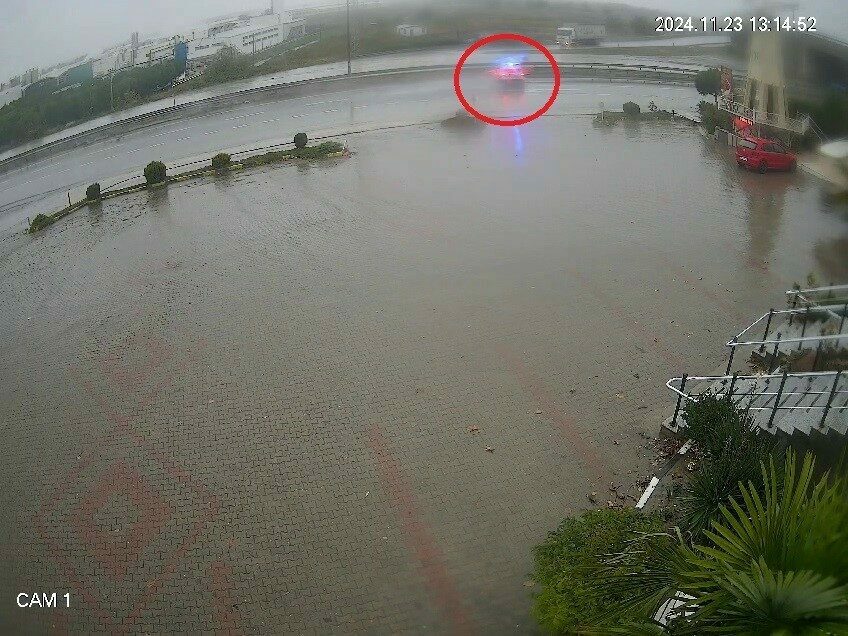 Görüntülerde siyah aracın direksiyon hakimiyeti kaybedildikten sonra bariyere çarpma anı, hemen ardından ise polis aracının aynı şekilde bariyerlere çarpma anı görüntülendi.