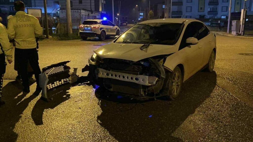 Bursa’nın İnegöl ilçesinde otomobille çarpışan aracın savrularak park halindeki kamyonete