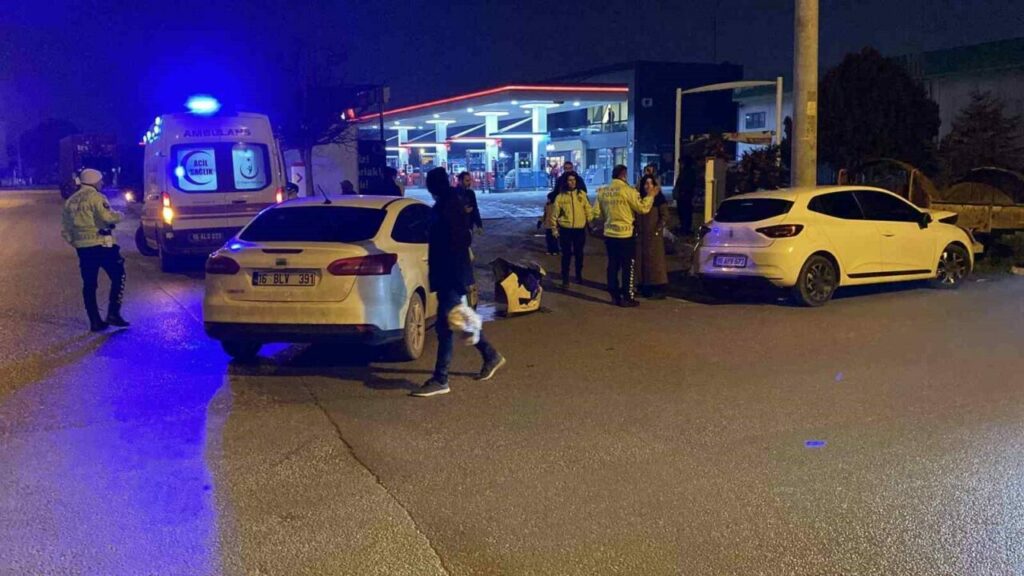 Kaza, saat 20.30 sıralarında Ertuğrulgazi Mahallesi Divan ile Ahsen sokaklarının kesiştiği kontrolsüz kavşakta meydana geldi. Büşra M. (37) yönetimindeki 16 APY 573 plakalı otomobil, Ferhat M. (26) yönetimindeki 16 BLV 391 plakalı otomobil ile çarpıştı. Çarpışmanın etkisiyle savrulan 16 APY 573 plakalı otomobil park halindeki kamyonete çarparak durdu. Kaza sonucu sürücüler yaralandı. Yaralılar kaza yerine sevk edilen ambulansla İnegöl Devlet Hastanesine kaldırıldı.
