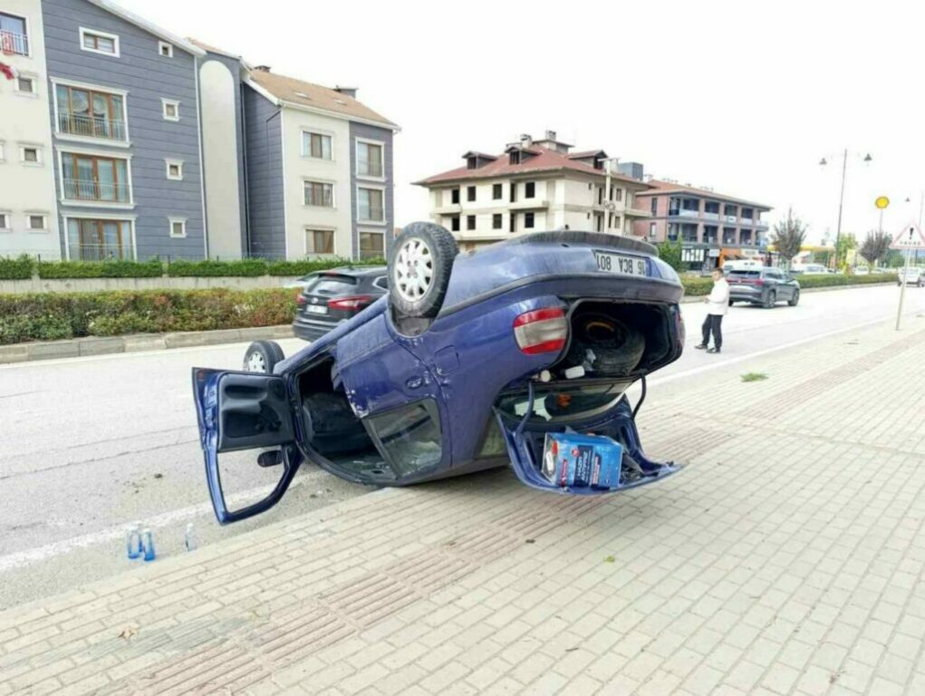 Kaza yapan otomobil takla atarak ters durdu: 1 yaralı