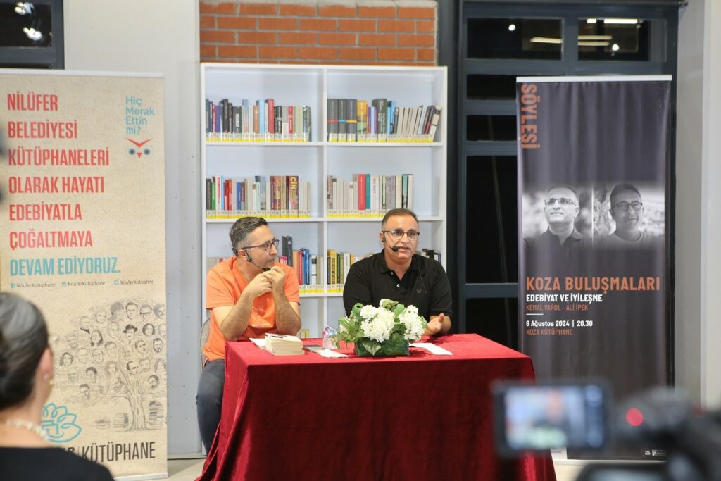NİLÜFER BELEDİYESİ’NİN GÖRÜKLE’DEKİ KOZA KÜTÜPHANE’DE DÜZENLEDİĞİ ‘KOZA BULUŞMALARI’NA KATILAN EDEBİYAT DÜNYASININ SEVİLEN İSİMLERİ KEMAL VAROL VE ALİ İPEK, “EDEBİYAT VE İYİLEŞME” ÜZERİNE KEYİFLİ SÖYLEŞİ GERÇEKLEŞTİRDİ.