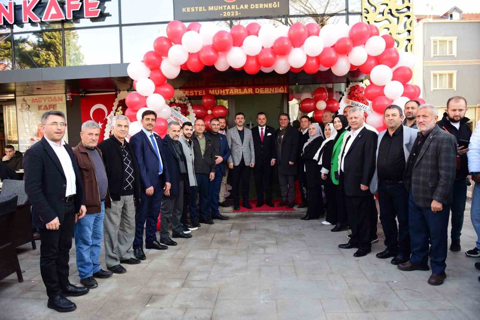 Derneğin açılışında konuşan Kestel Kaymakamı Recep Öztürk, ” Vatandaşımızın devlete en sıcak ulaşan eli, en yakın idare birimi olan muhtarlarımız bölgelerimizdeki, geliştirdiğimiz projelerin köylerimize, mahallelerimize ulaşmasında bizlerle her zaman işbirliği içinde olmuşlardır. Bizlere her zaman yardımcı olmuşlardır. Muhtarlık gerçekten fedakarlık özveri isteyen bir mühessesedir. Bu açıdan hepsini ayrı ayrı tebrik ediyorum. Bu binamızın ilçemize kazandırılmasında en büyük emeği olan başta Belediye Başkanımıza teşekkür ediyoru. Bu binamızın ilçemize hayırlı olmasını diliyorum” dedi.