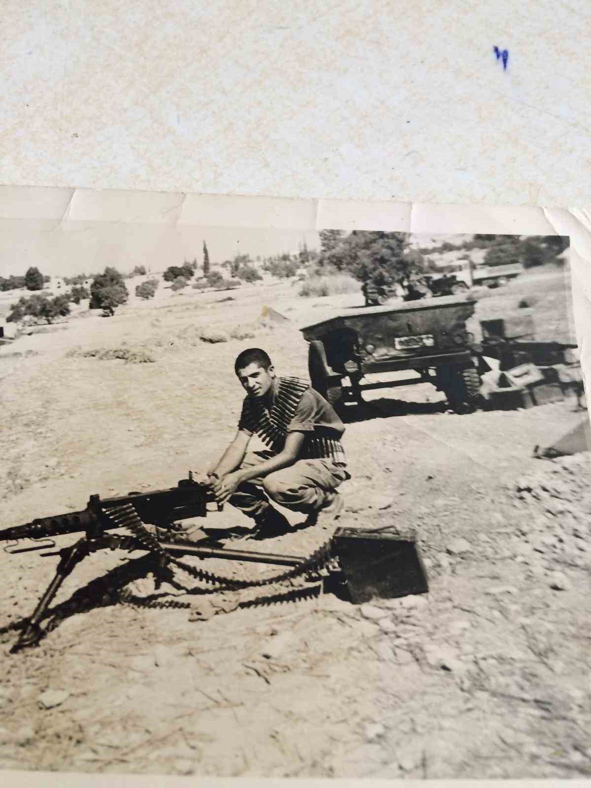BURSA(İHA) – Kıbrıs Barış Harekatı’na keskin nişancı olarak katılan 70 yaşındaki Türkiye Şehitler ve Gaziler Vakfı Başkanı Gazi Fikri Özer, 20 Temmuz 1974’te gerçekleştirilen Barış Harekatı’nın ardından 50 yıl sonra savaştığı topraklara gitti. Kıbrıs’taki 16 ay boyunca askerlik hizmetini yerine getirdiği birliği ziyaret eden Özer, harekat sırasında kullandığı makinalı tüfeğini yeniden buldu. Seri numarası hala ezberinde olan gazi, yıllar sonra makineli tüfeği ile hatıra fotoğrafı çektirdi.