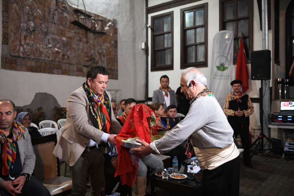 Osmangazi Belediye Başkanı Erkan Aydın, kına gecesinde yaptığı konuşmada, “Osmangazi Belediyesi olarak 20 yıldır düzenlediğimiz Osman Gazi’yi Anma ve Bursa’nın Fetih Günü Etkinlikleri ile geleneksel köy düğünü ve kına gecesi eğlencesini günümüzde yaşatıyoruz. Böyle köy düğünleri ve kına geceleri maalesef artık yapılmıyor. Gençlerimiz, ekonomik sıkıntılardan dolayı artık düğün dahi yapamaz oldu. Geleneklerimiz ve göreneklerimiz yaşasın diye Osman Gazi’yi Anma ve Bursa’nın Fetih Günü Etkinlikleri’nde köy düğünü ve köy kınası etkinliklerine yer veriyoruz. Şehir hayatı içerisinde unutulan gelenekleri, örf ve adetleri yaşatmak istiyoruz. Yeni kuşakların da bu gelenekleri tanımasını, bilmesini arzuluyoruz. Pazar günü Soğukpınar Mahallesi’nden gelin aldıktan sonra Çaybaşı Mahallesi’nde yapacağımız köy düğünü ile kültürümüze ait çok eski bir geleneği günümüze taşıyacağız. Emeği geçen herkese ayrı ayrı teşekkür ediyorum” dedi.