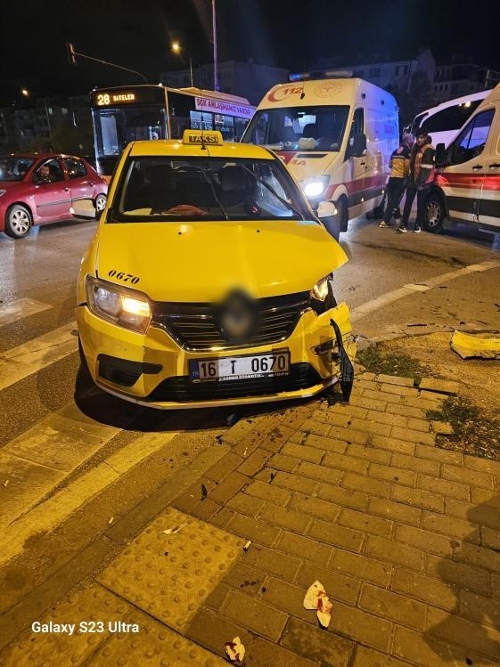 Bursa’da kırmızı ışıkta geçen otomobil, ticari taksiye çarptı. Kazada toplamda 6 kişi yaralandı.
