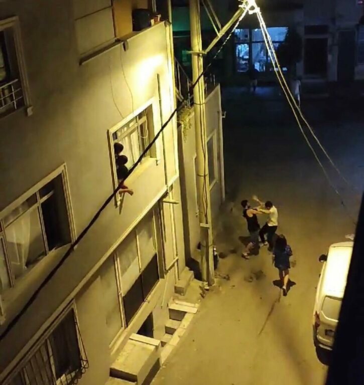 Bursa’da kız arkadaşıyla kavga eden kişi, kavgayı ayırmak isteyen başka bir kişi tarafından boğazından bıçaklandı. O anlar kameraya yansırken hastaneye kaldırılan gencin sağlık durumunun iyi olduğu öğrenildi.