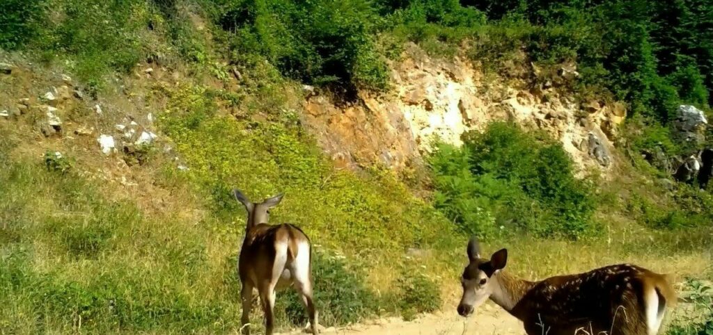 Bursa’nın zirvesi Uludağ’da fotokapana takılan kızıl geyik ailesinin doğa gezisi böyle kaydedildi.