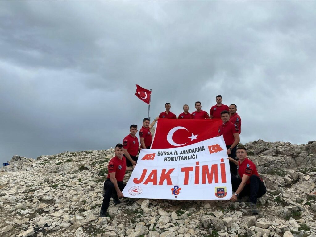 Bursa’da Jandarma Teşkilatı’nın 185. kuruluş yıldönümü münasebetiyle Bursa İl Jandarma Komutanlığı, Jandarma Komando Arama Kurtarma Tim Komutanlıkları (JAK) Uludağ’da 2543 metreye çıkarak Türk bayrağını zirvede dalgalandırdı.