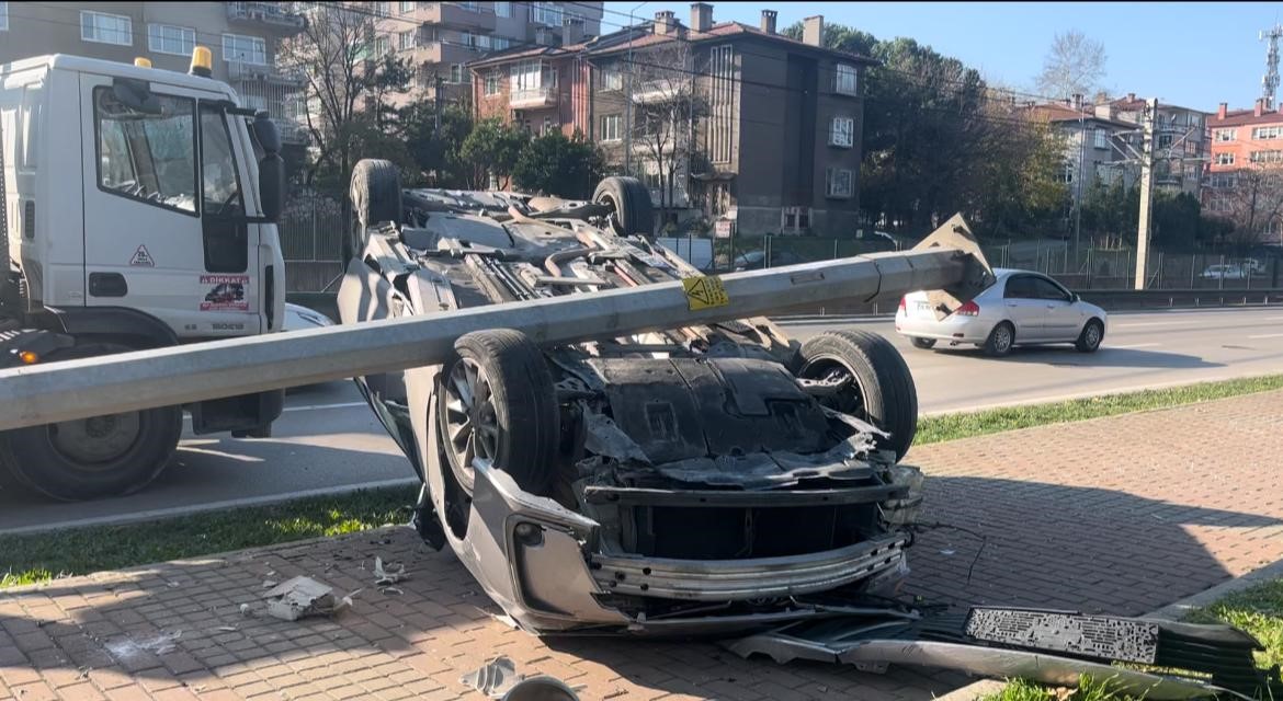 Merkez, Osmangazi ilçesi İzmir Yolu Caddesi üzerinde 34 ENA 109 plakalı Muhammet D. idaresindeki otomobil, seyir halindeyken kontrolden çıktı. Kaldırıma çarptıktan sonra direğe hızla vuran otomobil ters döndü. Gevşeme yapan aydınlatma direği ise takla atan aracın üzerine devrildi. Çevredekiler araçta bulunan 4 kişinin yardımına koşarken, durum 112 Ekiplerine bildirildi. İhbar üzerine gelen ekipler, 4 genci araç içinden çıkardıktan sonra sağlık ekiplerine teslim etti. Sağlık ekiplerince ambulansta kontrol edilen 4 kişi ifadesi alınmak üzere karakola götürülürken, polis olayla ilgili tahkikat başlattı.