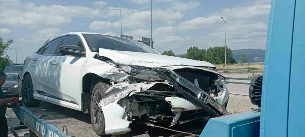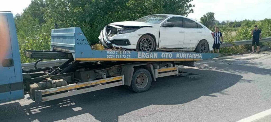 Kaza, saat 15.00 sıralarında İnegöl-Domaniç karayolu İnegöl’ün Hamamlı Mahallesi mevkiinde meydana geldi. İnegöl’den Domaniç istikametine seyir halinde olan Sürücü Serdar Y.(36) yönetimindeki 67 ABV 510 plakalı otomobil, köprülü kavşaktan dönüş yaptığı sırada sürücüsünün kontrolünden çıkarak bariyerlere çarptı. Kaza sonucu araçtaki yolcular Hatice Ç.(35), Özden Y.(35), 1 yaşındaki Gökçen Y. İle 6 yaşındaki Aymira Y. yaralandı. Yaralılar kaza yerine sevk edilen Ambulanslarla İnegöl Devlet Hastanesine kaldırıldı.