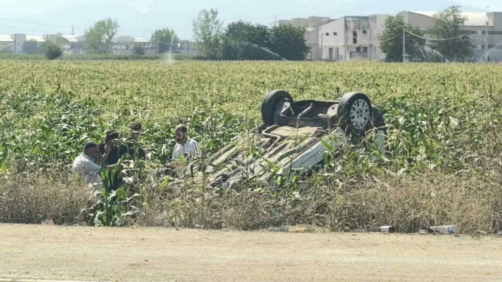 Kaza saat 12.30 sıralarında Alanyurt ile Akhisar Mahallesini bağlayan beton yolda meydana geldi. Akhisar mahallesine seyreden Servet A.(40) yönetimindeki 16 AFE 491 plakalı hafif ticari araç, virajda sürücüsünün kontrolünden çıkarak mısır tarlasına takla atarak ters durdu. İhbarla kaza yerine 112 ve polis ekipleri sevk edildi. Sürücü, isteği üzerine sağlık ekiplerince ayakta tedavi edildi.