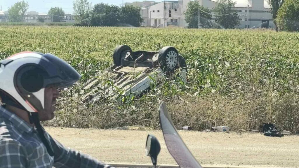 Bursa’nın İnegöl ilçesinde virajda sürücüsünün kontrolünden çıkan hafif ticari araç takla atarak mısır tarlasına uçtu; sürücü hafif şekilde yaralandı.