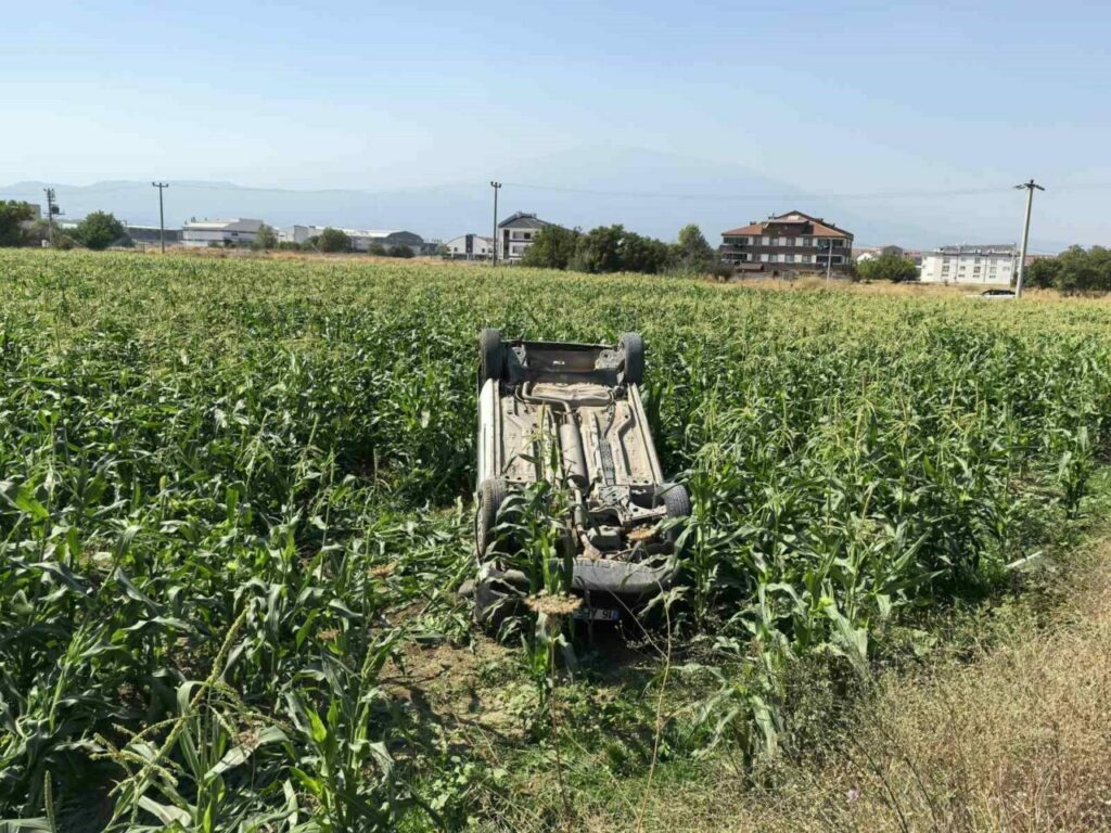 Kaza saat 12.30 sıralarında Alanyurt ile Akhisar Mahallesini bağlayan beton yolda meydana geldi. Akhisar mahallesine seyreden Servet A.(40) yönetimindeki 16 AFE 491 plakalı hafif ticari araç, virajda sürücüsünün kontrolünden çıkarak mısır tarlasına takla atarak ters durdu. İhbarla kaza yerine 112 ve polis ekipleri sevk edildi. Sürücü, isteği üzerine sağlık ekiplerince ayakta tedavi edildi.