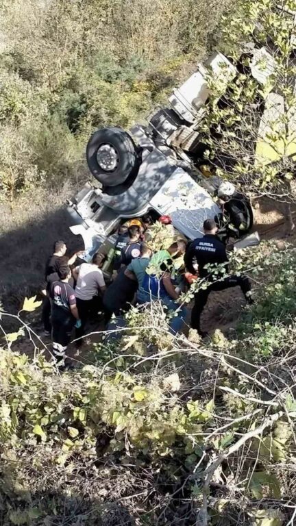 Bursa’da kontrolden çıkan kamyon virajı almayıp dere yatağına uçtu. Kazada sıkışan sürücü ambulansla hastaneye kaldırılırken, olayla ilgili tahkikat başlatıldı.