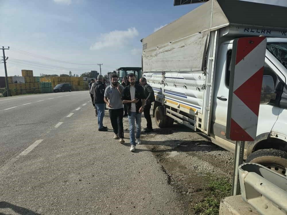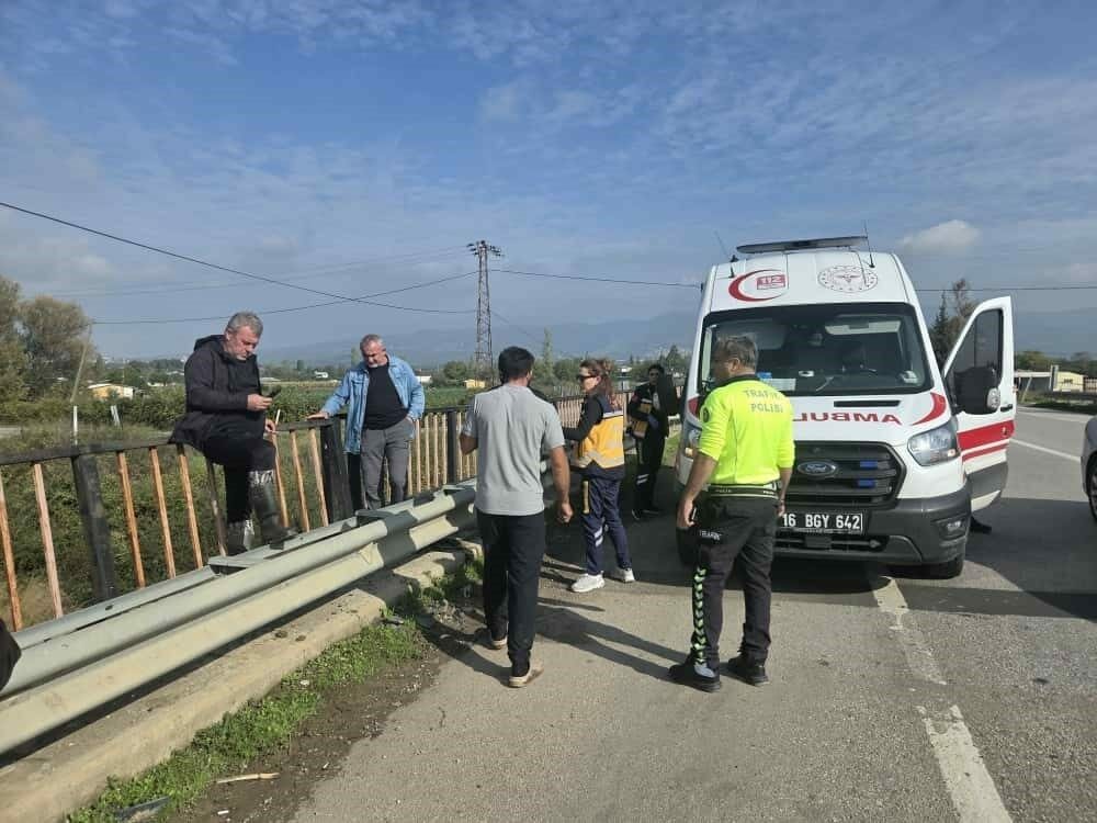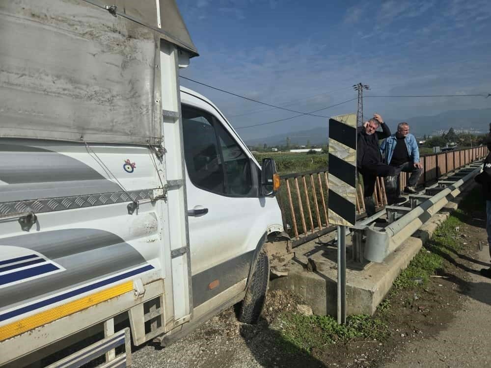 Orhangazi-İznik Karayolu’nda meydana gelen trafik kazasında kontrolden çıkan kamyonet köprü demirlerine saplandı. Dere yatağına uçmaktan son anda kurtulan kamyonetin sürücüsü hafif yaralandı.