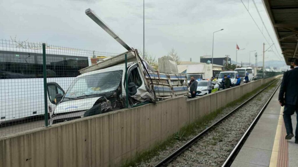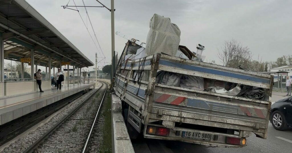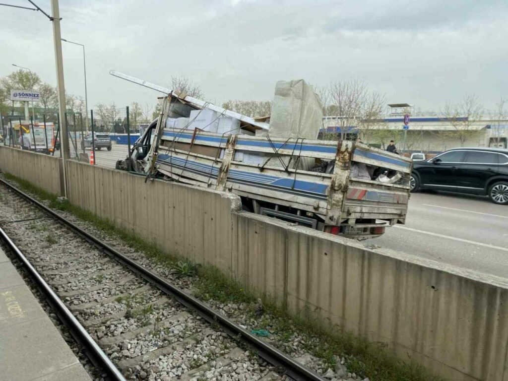 Bursa’da sürücüsünün kontrolünden çıkan kamyonet metronun bariyerlerine çarptı. Kazada sürücü Mehmet A. yara almadan kurtulurken, metro seferlerinde kısa süreli aksama yaşandı.