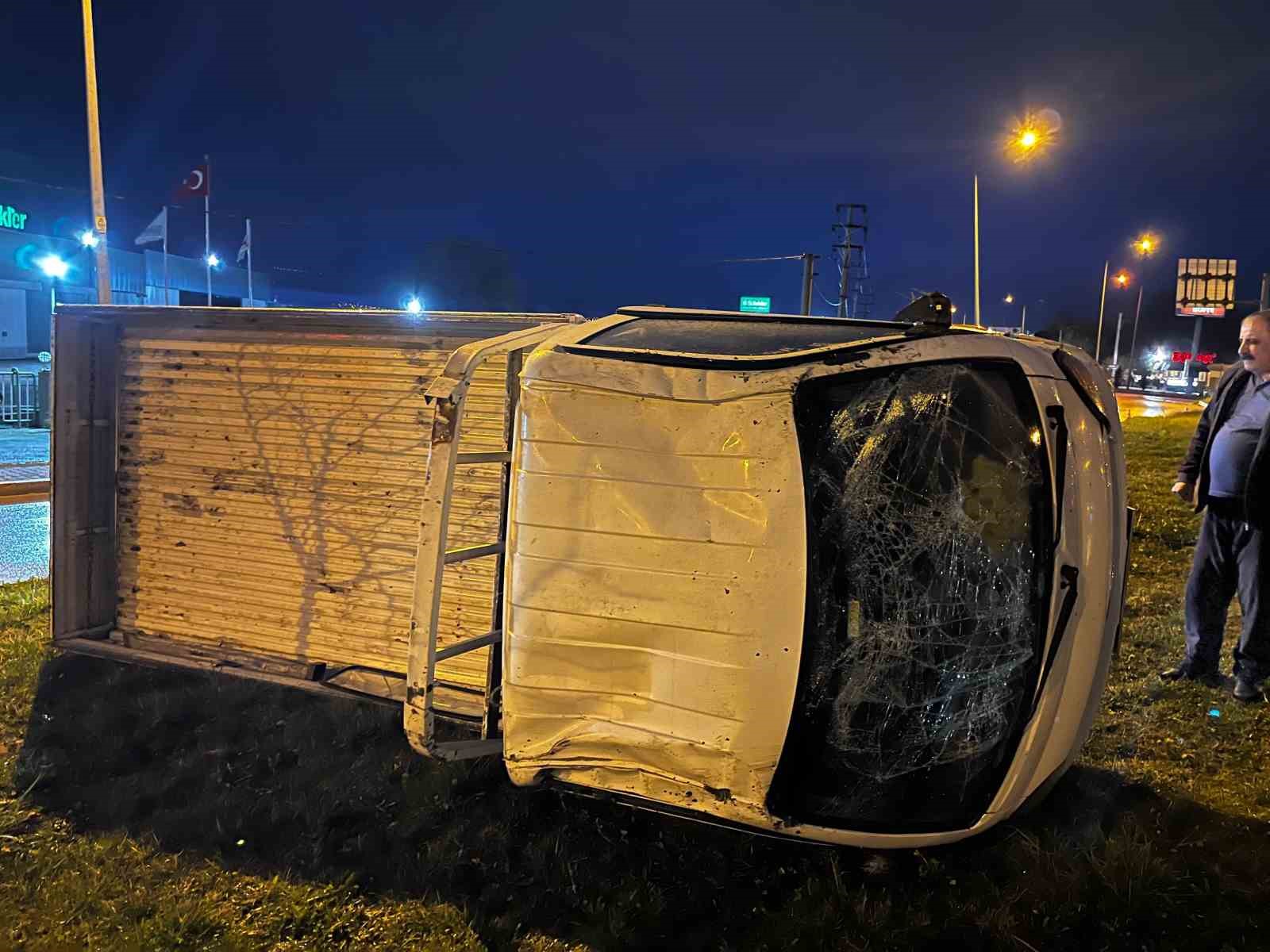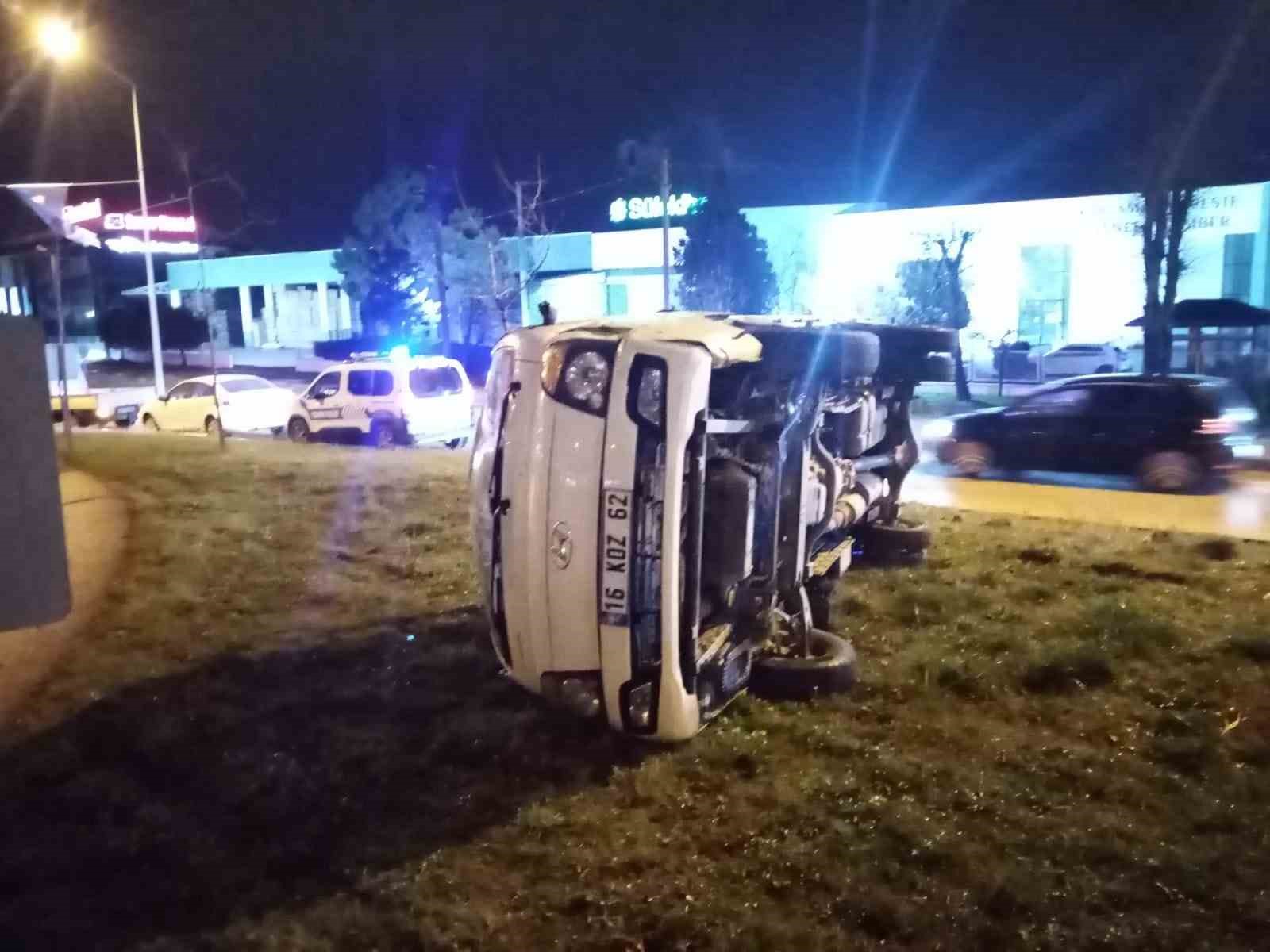 Kaza, saat 19.30 sıralarında Bursa-Ankara karayolu OSB köprülü kavşağında meydana geldi. Bursa’dan gelip İnegöl merkeze dönüş yapmak isteyen sürücü Muzaffer D. yönetimindeki 16 KOZ 62 plakalı kamyonet, kontrolden çıkarak yeşil alan üzerine devrildi. Kaza sonucu sürücü ile yanındaki yolcu Selahattin D. (32) yaralandı. Yaralılar kaza yerine sevk edilen ambulansla İnegöl Devlet Hastanesine kaldırıldı.