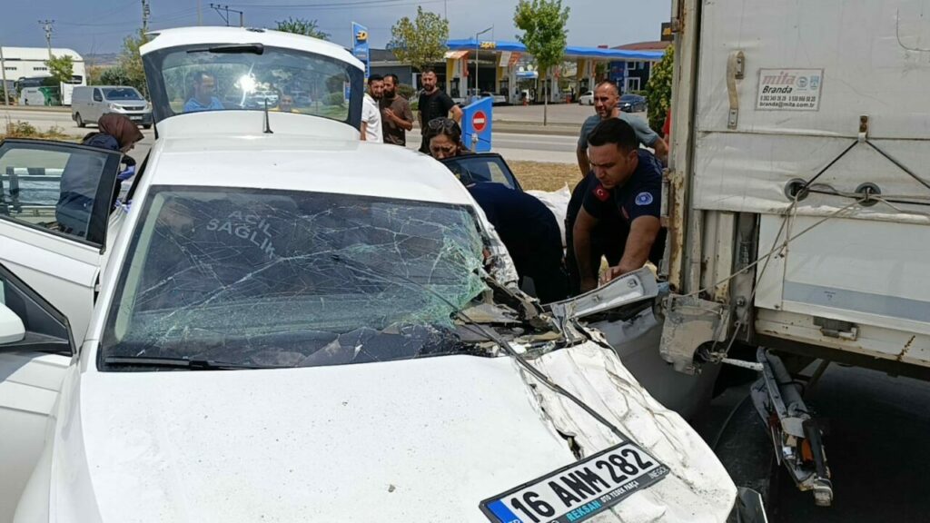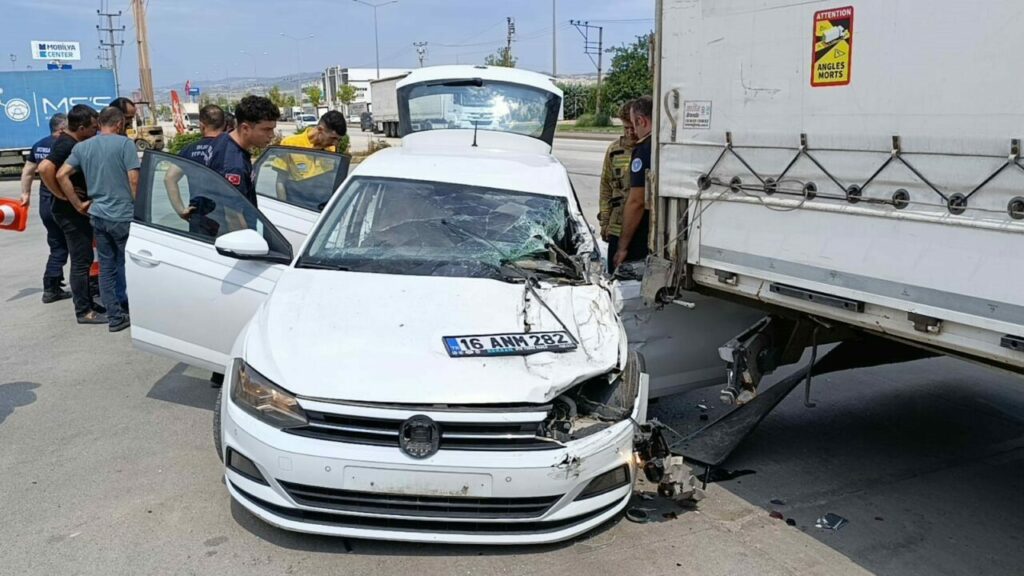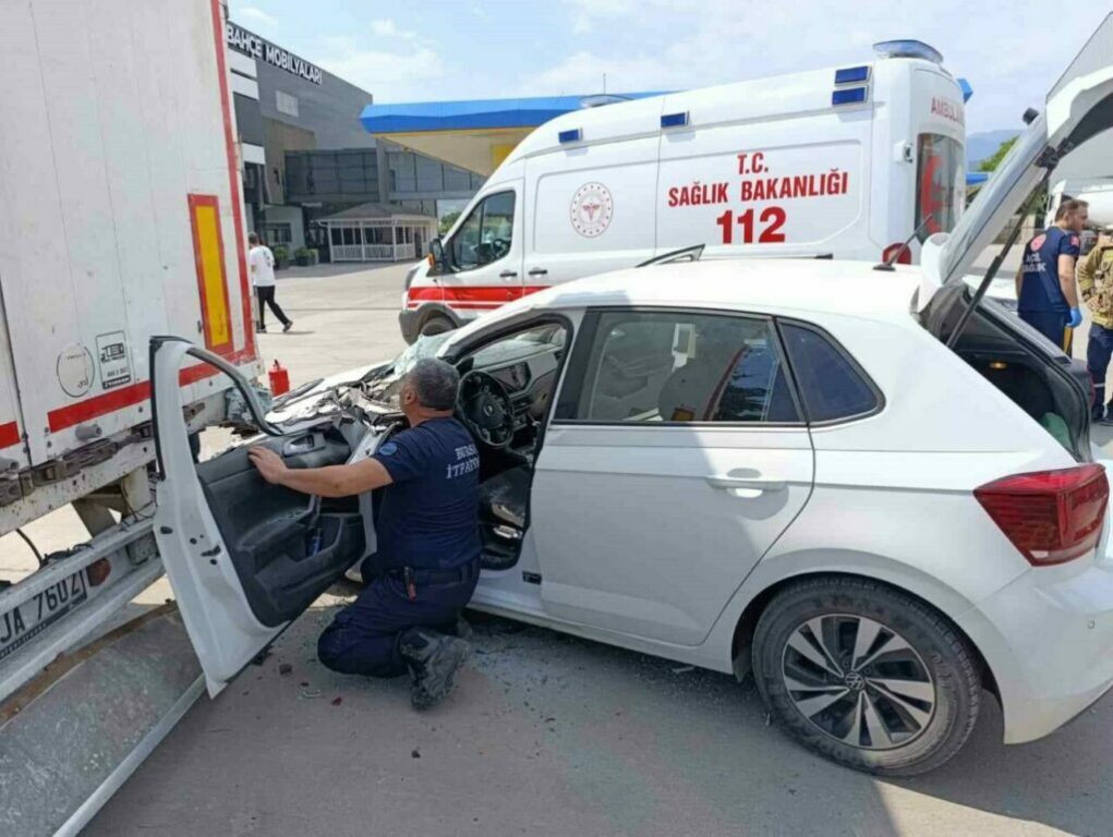 Bursa’dan İnegöl istikametine seyir halinde olan Furkan P.(26) yönetimindeki 16 ANM 282 plakalı volkswagen marka otomobili iddiaya göre bir araç sıkıştırdı. Direksiyon hakimiyeti kaybolan otomobil, yolun sağında bulunan akaryakıt istasyonunda park halindeki 34 JA 7602 tıra arkadan çarptı. Kaza sonucu ağır yaralanan genç sürücü şoför mahallinde sıkıştı. Olay yerine gelen itfaiye arama kurtarma ekipleri tarafından çıkarılan sürücü, ambulansla İnegöl Devlet Hastanesi Acil Servisine kaldırılarak tedavi altına alındı. Kaza anı bir işyerinin güvenlik kamerasına saniye saniye yansıdı.