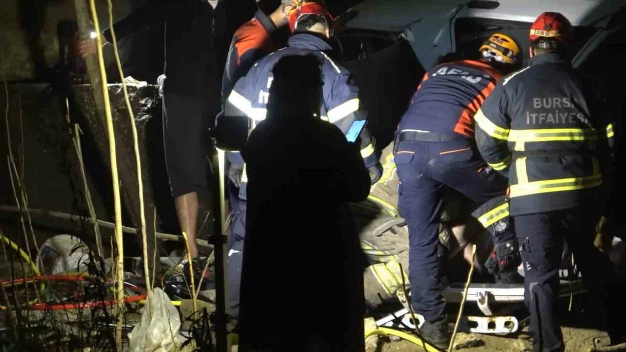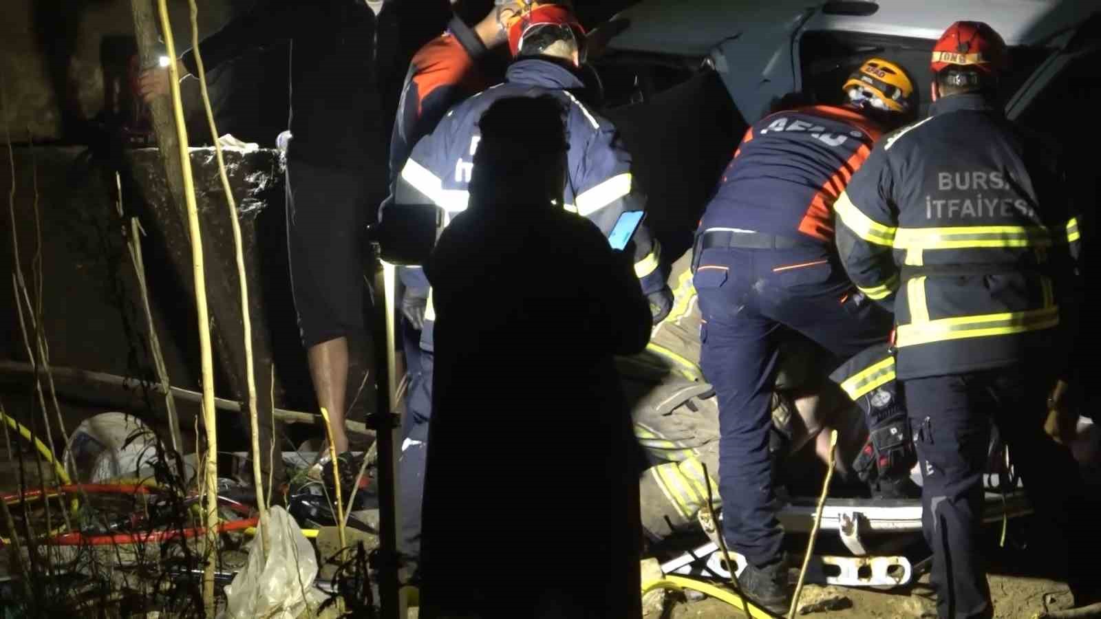 Bursa’da sürücüsünün kontrolünden çıkan otomobil 7 metre yükseklikten dereye uçtu. Kazada 4 kişi yaralandı.