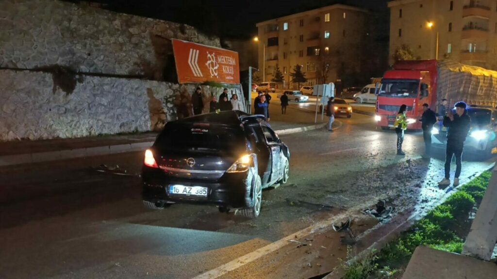 Bursa’nın İnegöl ilçesinde yağış nedeniyle kayganlaşan yolda kontrolden çıkan otomobilin takla atarak direğe çarıptığı kazada 3 kişi yaralandı.