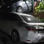 Bursa’da sürücünün kontrolden çıkan otomobil bir sitenin duvarını aşıp başka bir otomobilin üzerine düştü.