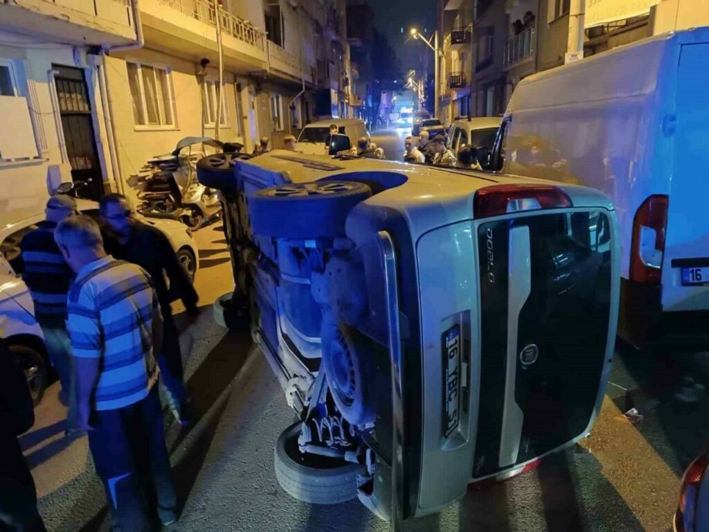 Kaza, Osmangazi ilçesinde saat 20.30 sıralarında Selamet Mahallesi 1’inci Ordulu Sokak’ta meydana geldi. M.A. idaresindeki 16 YBC 51 plakalı hafif ticari araç, sürücüsünün direksiyon hakimiyetini kaybetmesi sonucu park halindeki otomobile çarptı. Çarpmanın etkisiyle araç yan dönerken, içerde bulunan yolculardan biri yaralandı. Kazanın ardından sürücü ile birlikte araçta bulunan 4 kişi çevredeki vatandaşların yardımıyla dışarı çıkarıldı. İhbar üzerine olay yerine sağlık, itfaiye ve polis ekipleri sevk edildi. Sağlık ekipleri yaralıya olay yerinde ayakta tedavi uyguladı.