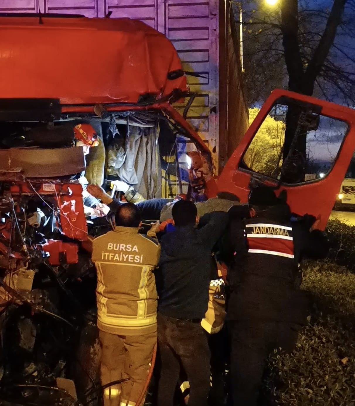 Bursa’nın İnegöl ilçesinde meydana gelen kazada kontrolden çıkan tır, ağaca çarptı. Ağır yaralanarak araçta sıkışan sürücü, İtfaiye ve Sağlık ekiplerince uzun uğraşı sonucu kurtarıldı.